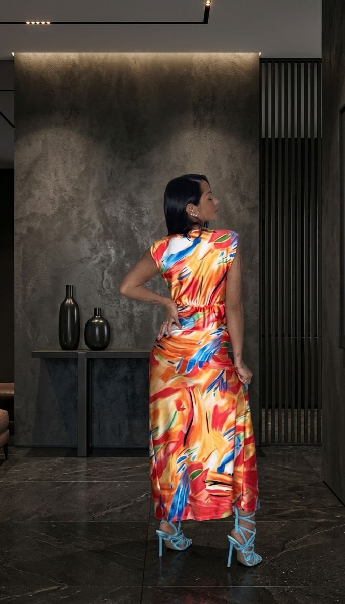 Porta l’energia dell’arte contemporanea nel tuo guardaroba con l’abito Pamela!  TG UNICA veste fino ad una L\XL     taglia della modella- S\XS  altezza 1,62